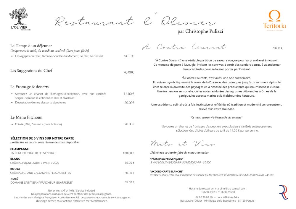 L'OLIVIER est membre du Collège Culinaire de France depuis 2023.